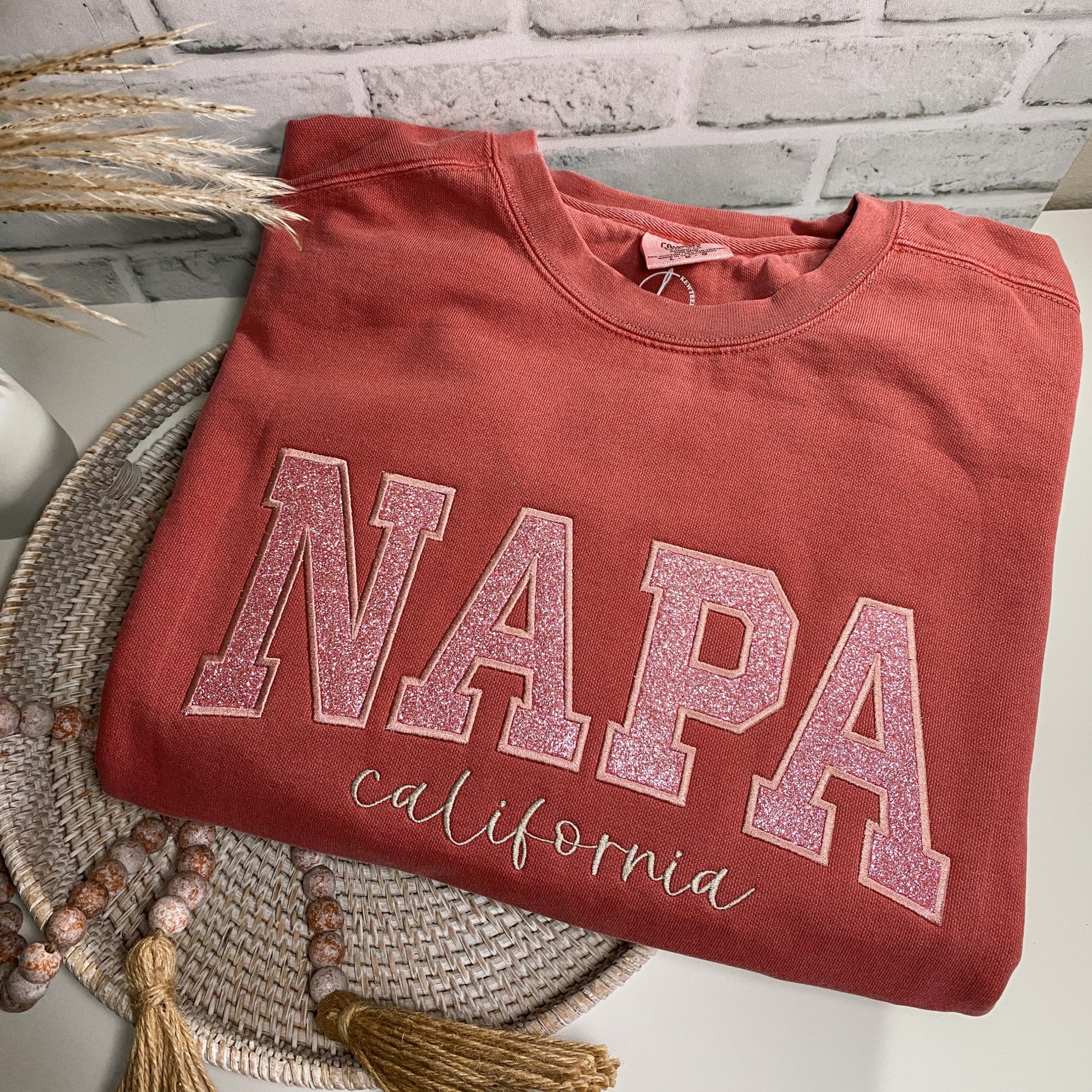 Custom City State Glitter Appliqué Sweatshirt | Embroidered